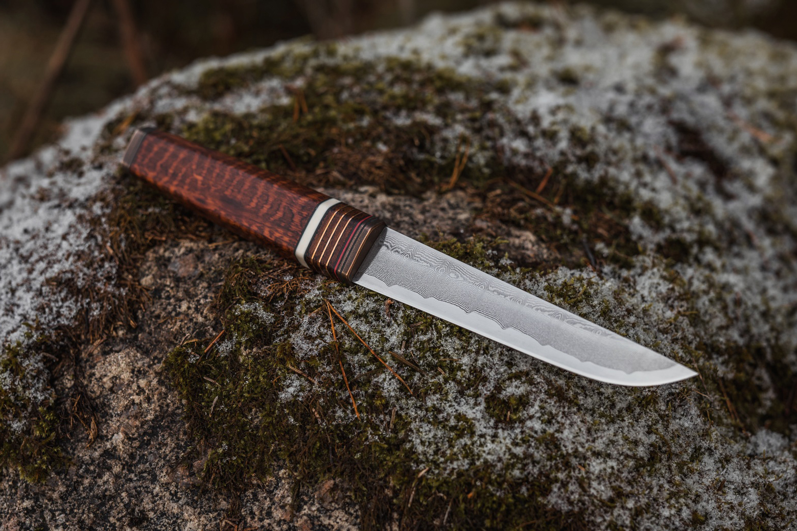 Snakewood Damascus Feather Puukko knife